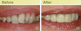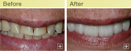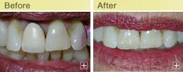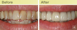 Crowded and stained teeth were improved with 6 all porcelain crowns.