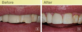 A chipped single central tooth was repaired with a porcelain mini veneer.